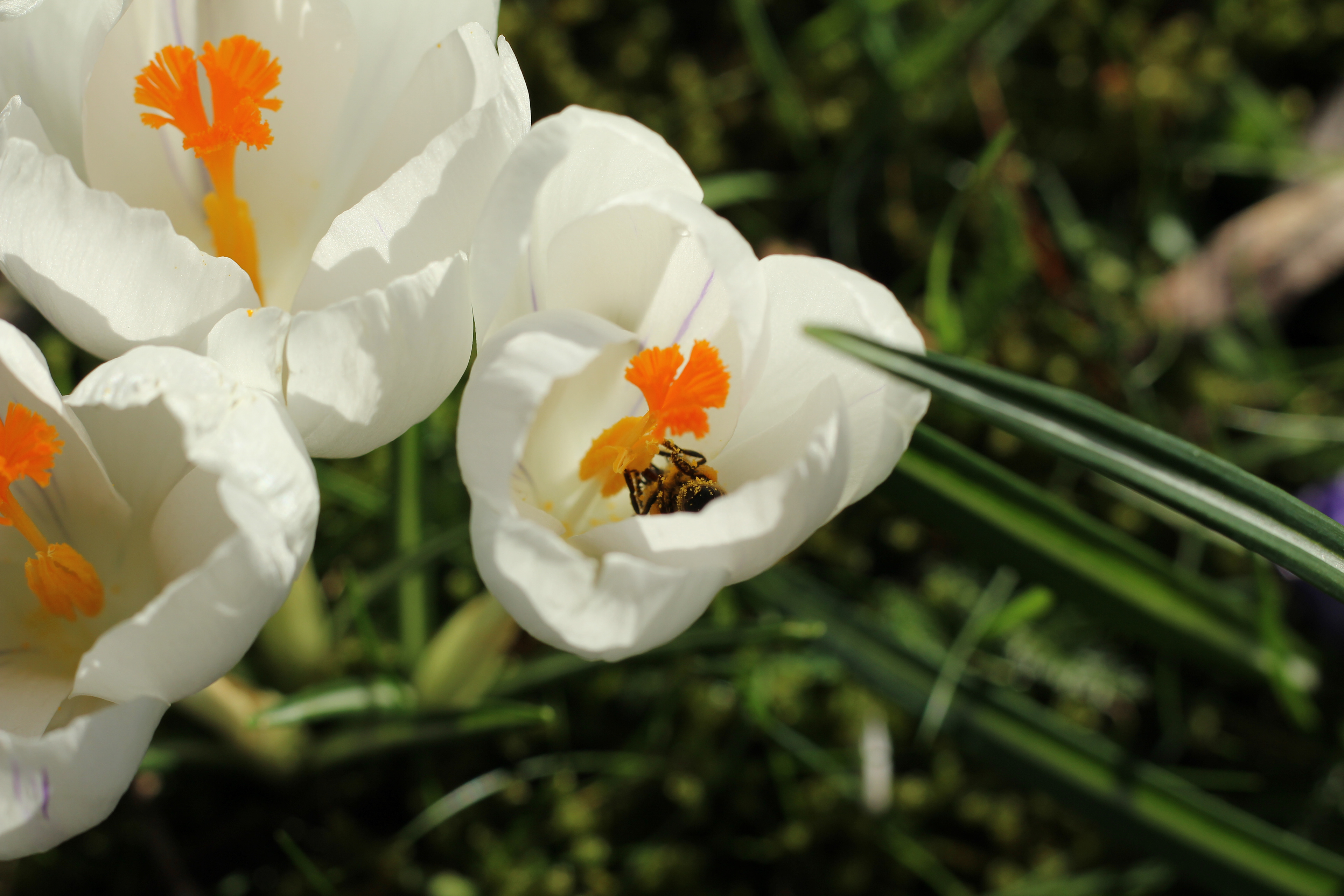 “Close-up of a bee inside a crocus covered in pollen. Crocus contains pollen; Steven plants flowers as food for his bees. Season: beginning of march”