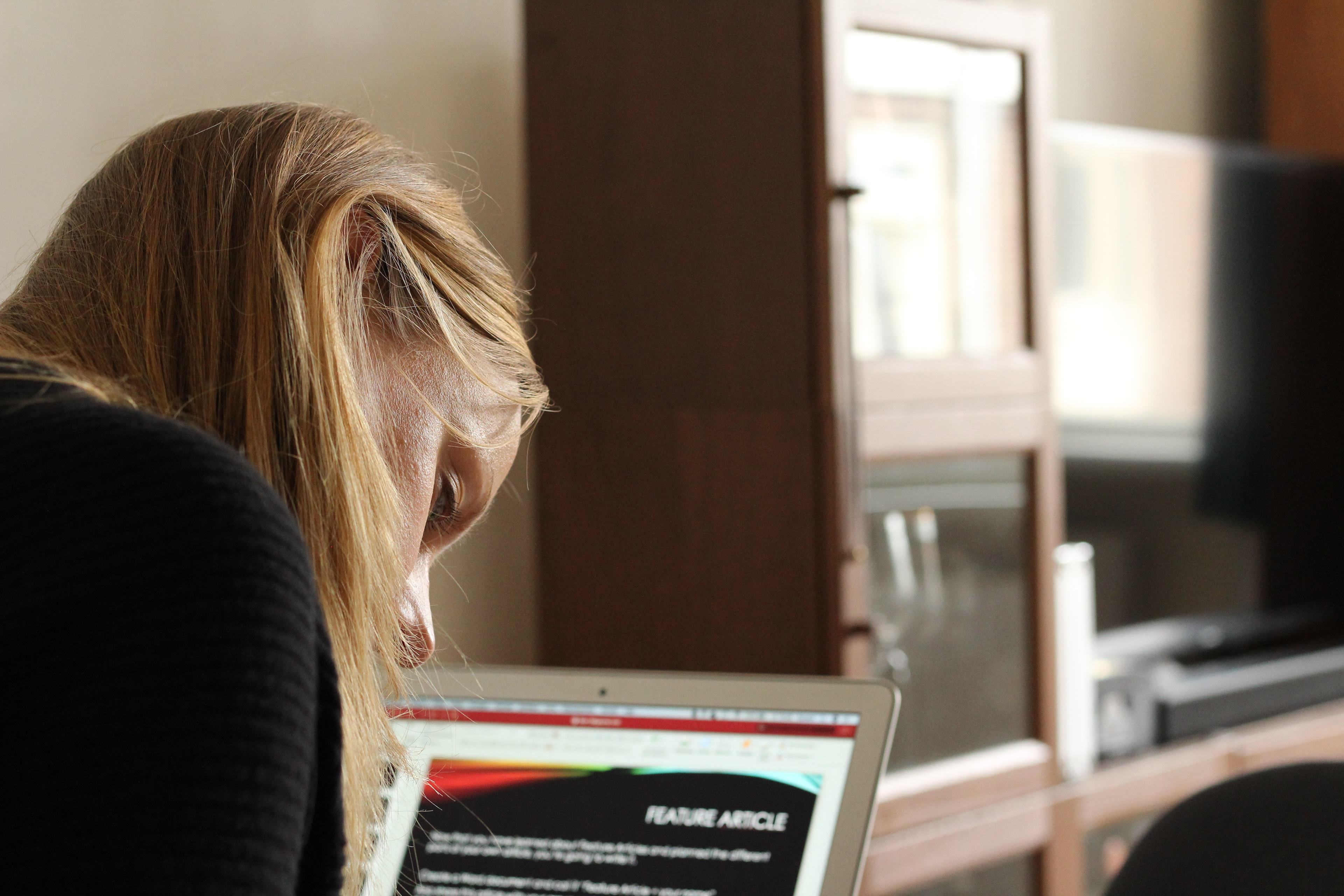 “Working from home means that living blends with working. In the picture on the right you can see the big television, which is big for a reason. My sister and her boyfriend love to watch television. Working at home also means being able to wear a bit more comfortable clothes.”